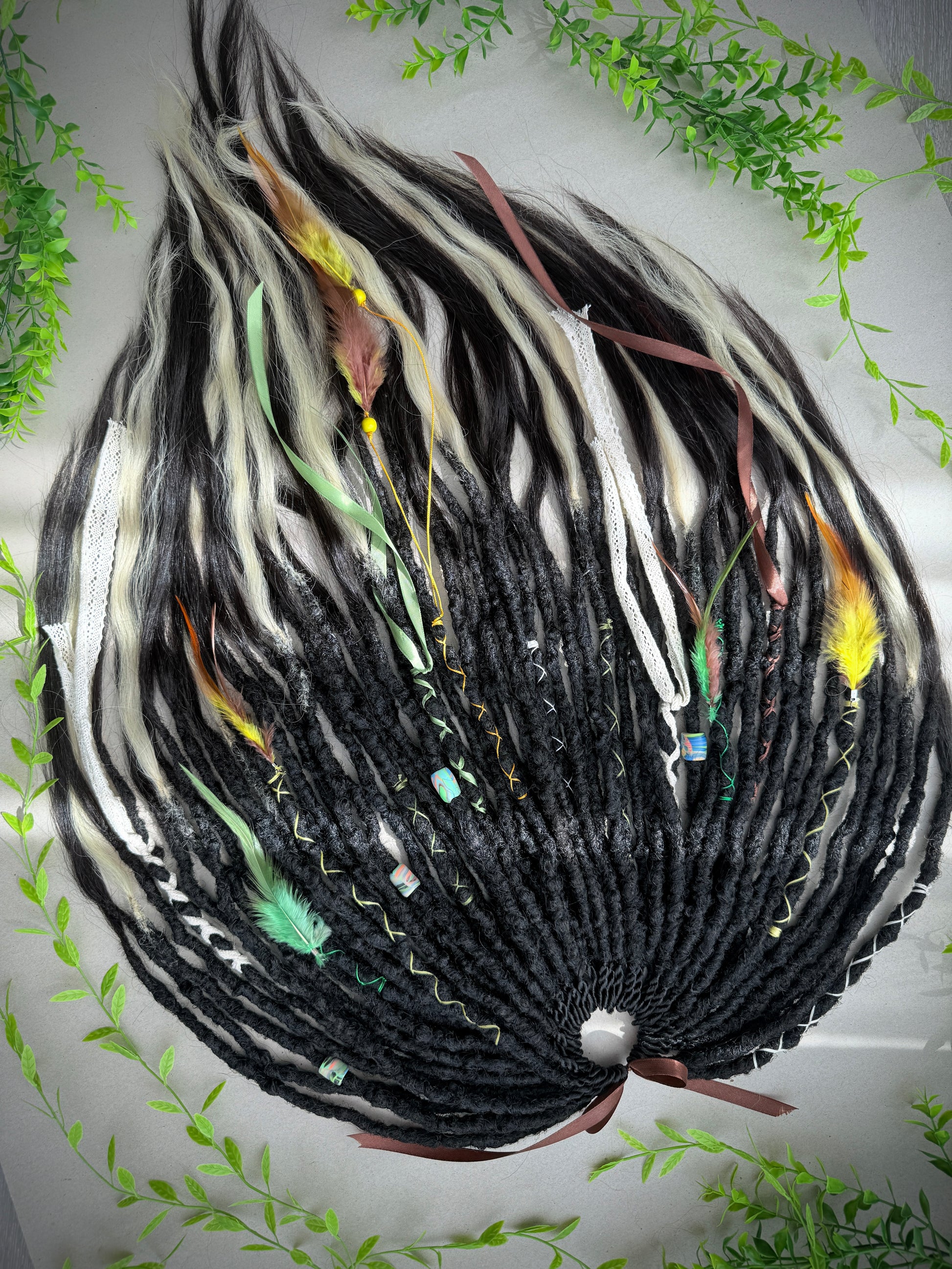 Complete dreadlock set with synthetic SE dreads and natural loose ends