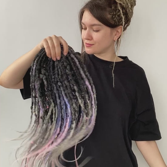 Twilight Ombre Dreadlocks – Black, Grey & Pastel Full Set Fantasy Hair Extensions