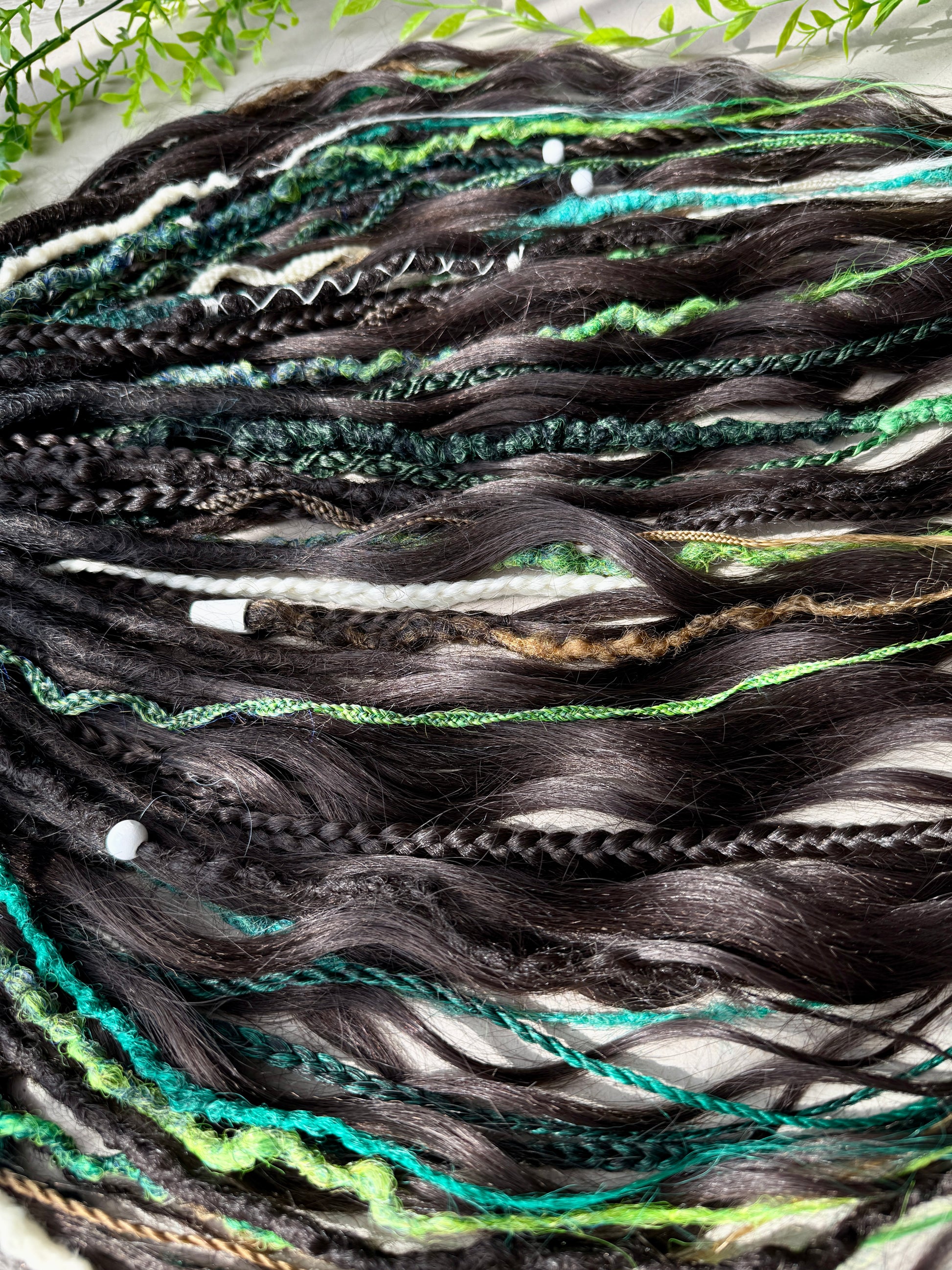 Woodland Fantasy Dreadlocks – Curly Braided Hair Extensions in Green & Earth Tones