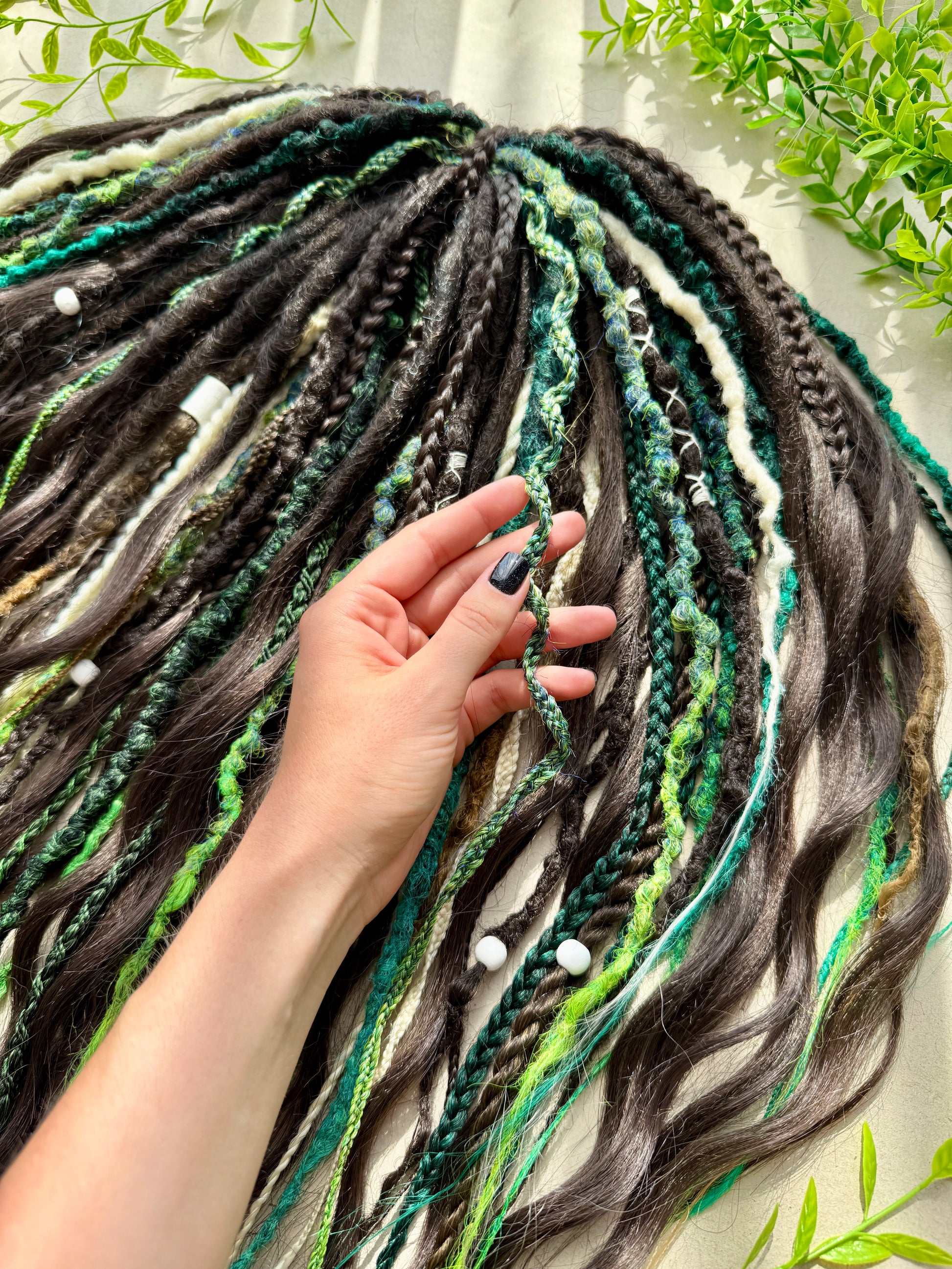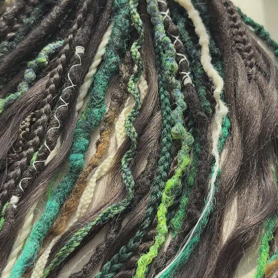 Handmade synthetic dreadlock set inspired by deep forest colors and wild nature.