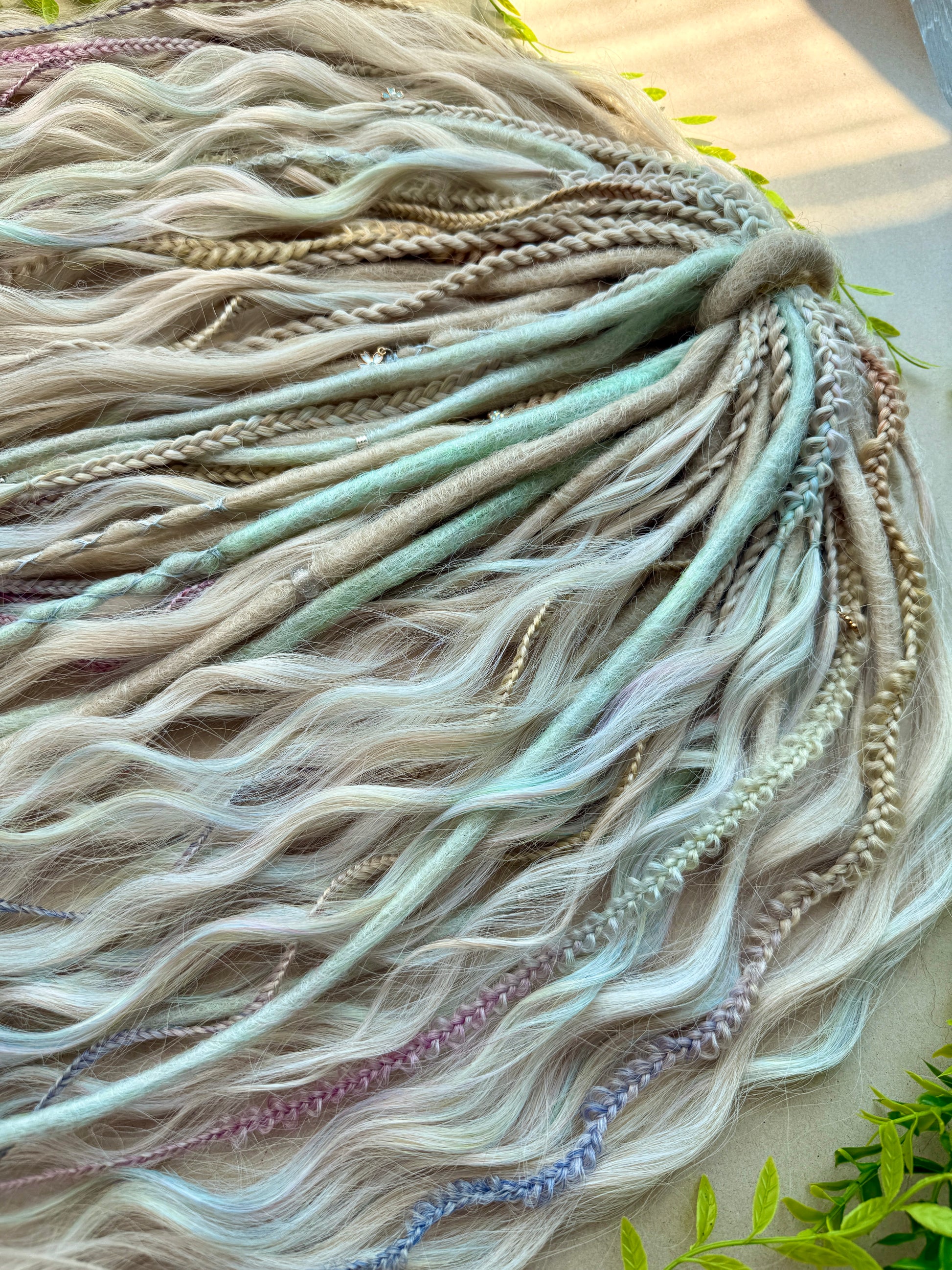 Handmade synthetic dreadlock full set inspired by soft rainbow tones and gentle fairytale aesthetics.
