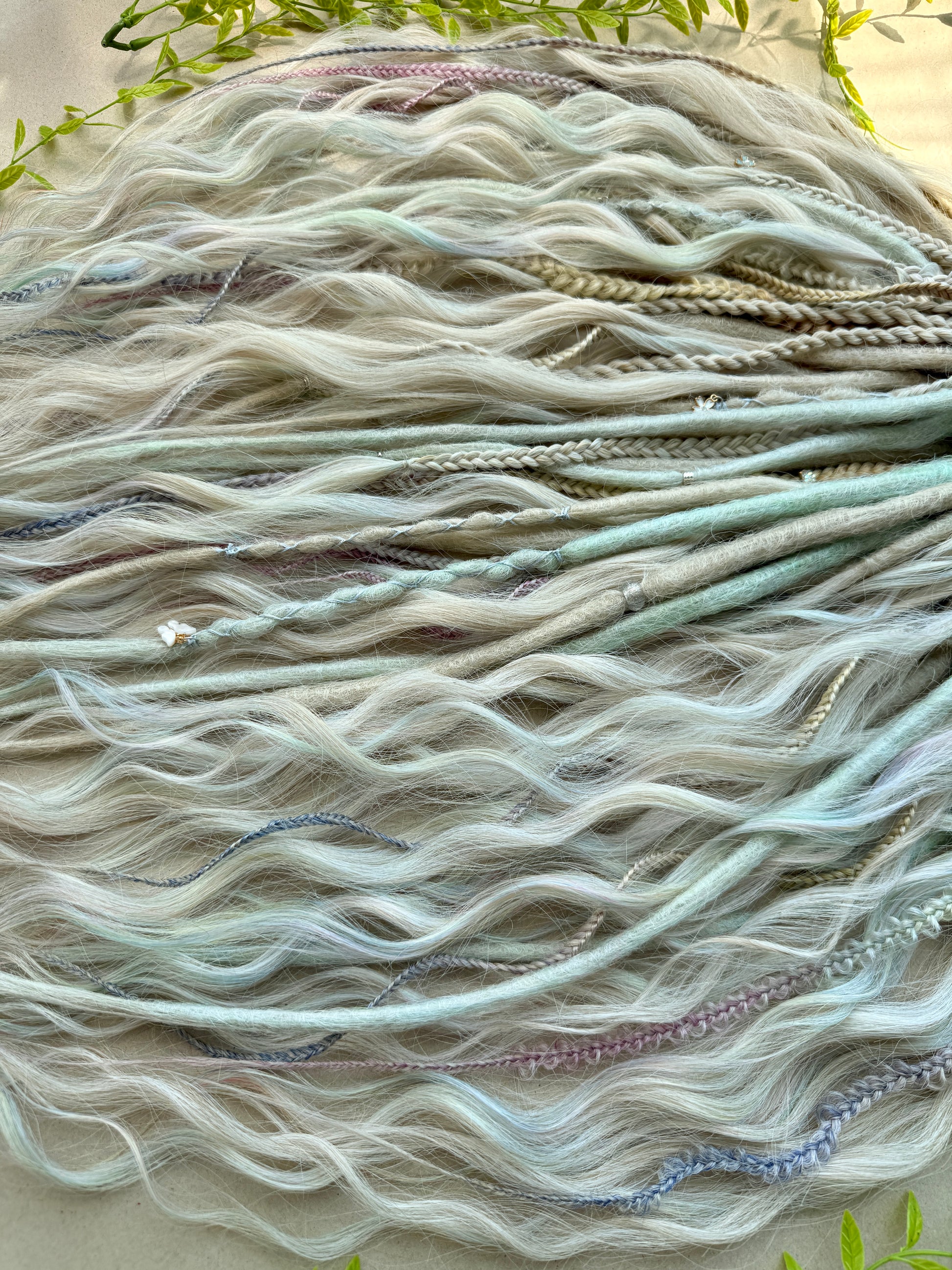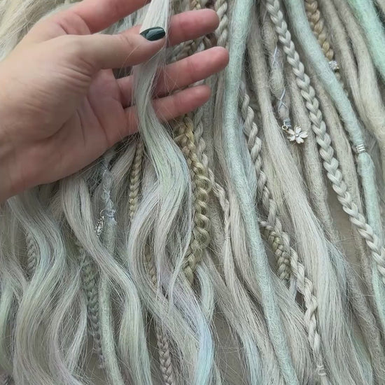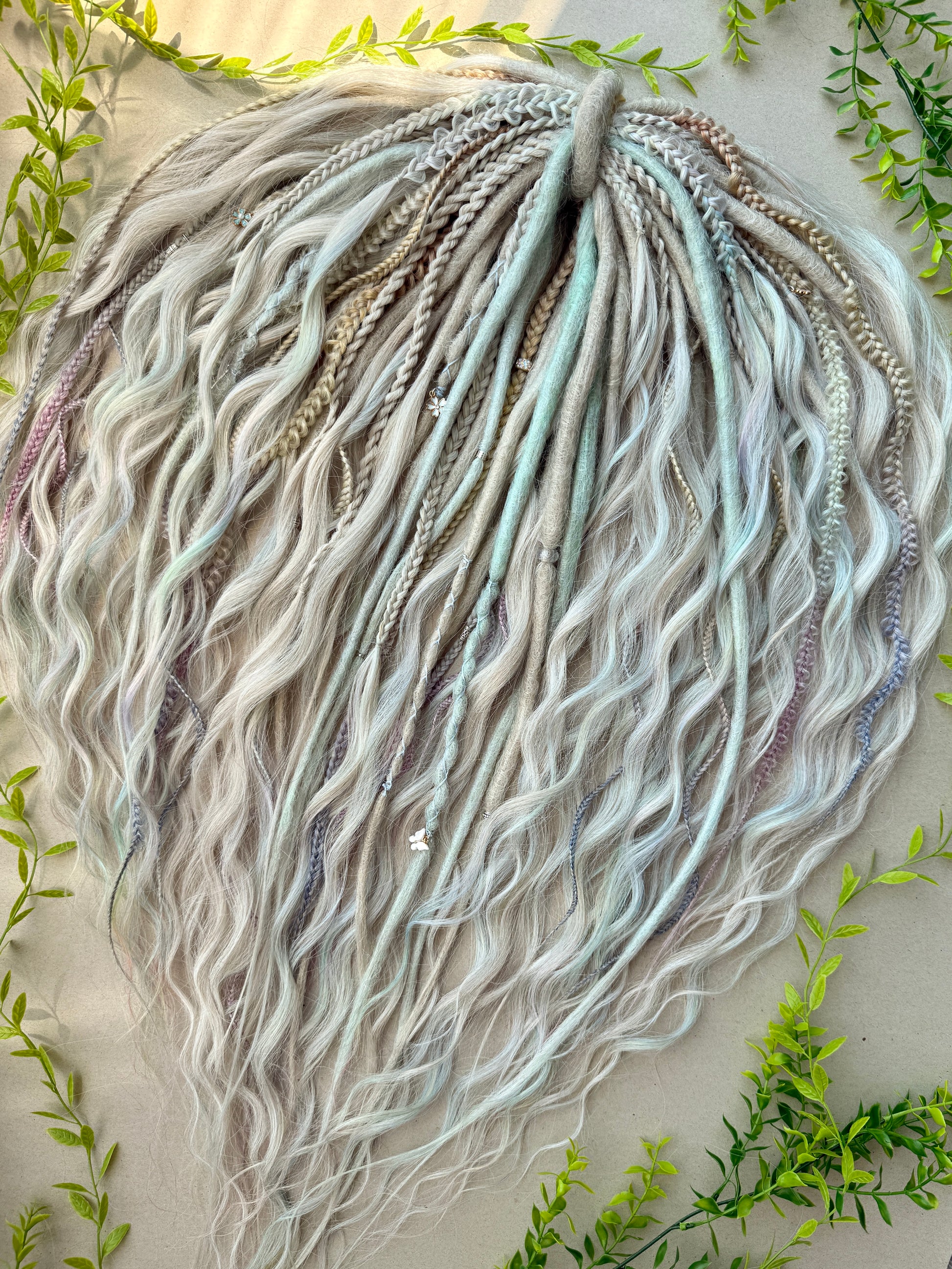 Pastel Rainbow Dreadlocks – Blonde, Mint & Lilac Full Set Fantasy Hair Extensions