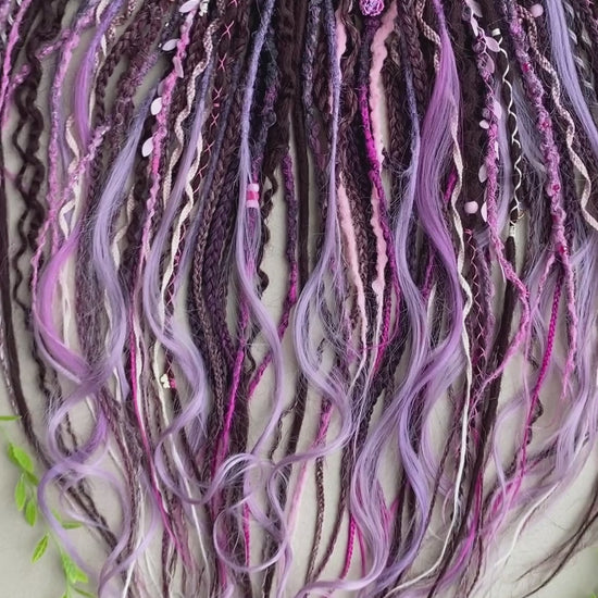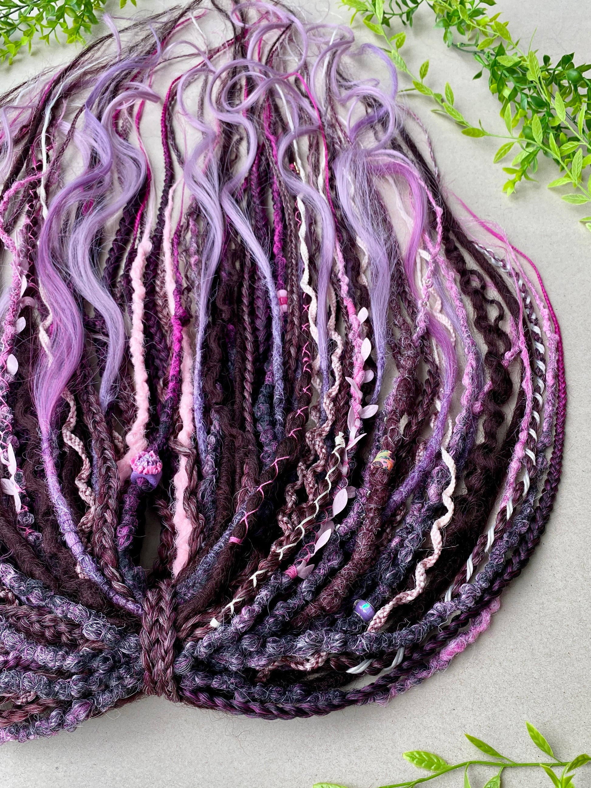 Witchy Purple & Pink Dreadlocks – Lavender Ombre Full Set Fantasy Hair Extensions