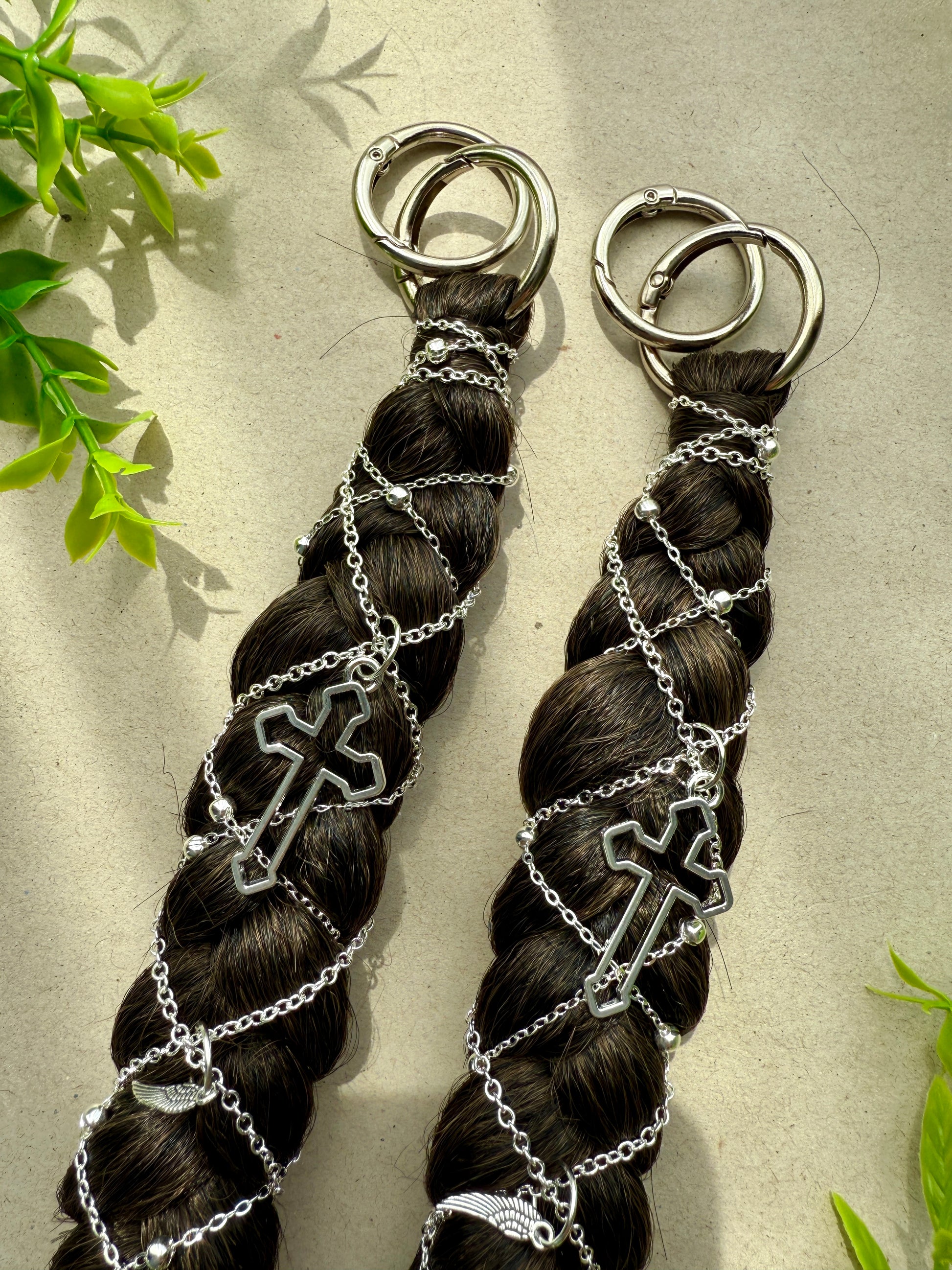 Instantly transform your hairstyle with this handmade set of 2 clip-in braided hair extensions, decorated with charms, chains, and ribbons.